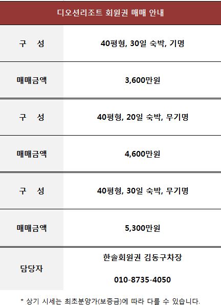 여수 디오션리조트 회원권 매매 정보