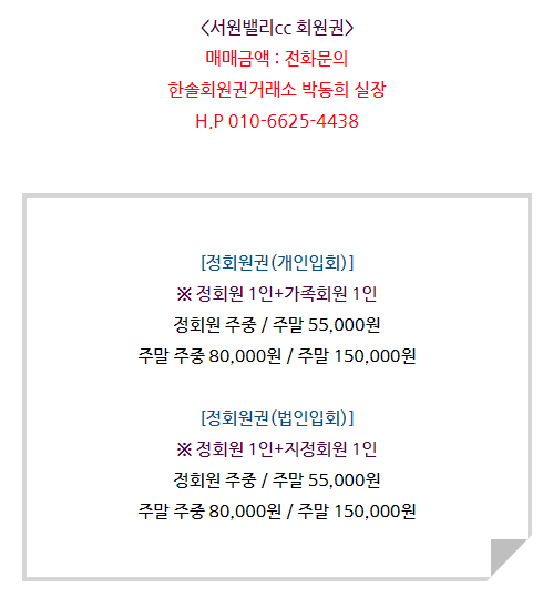 매매상담 - 한솔회원권거래소 박동희 실장 010-6625-4438