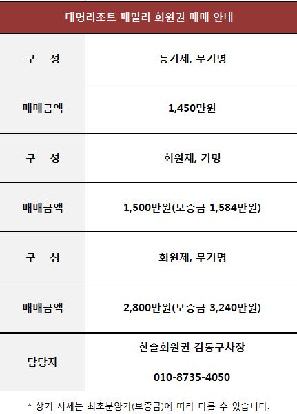 대명리조트 패밀리회원권 매매 정보. 소노호텔앤리조트