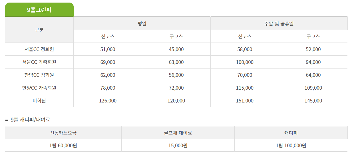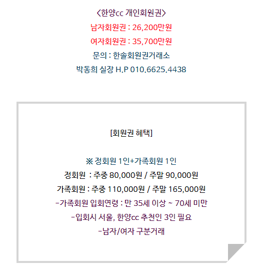 한양cc 회원권은 개인회원권으로 남자와 여자가 구분되어