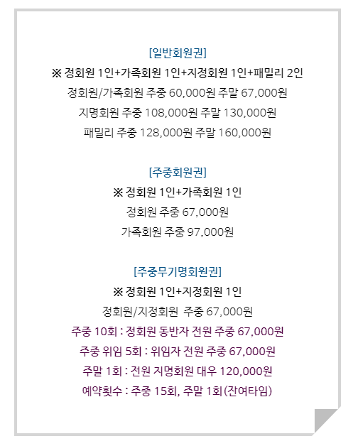 주중무기명회원권으로 구분되어 있습니다. 회원권의 종류에