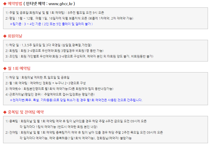 ◆ 기흥cc 이용요금 및 예약 안내 ◆