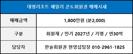 ◀ 대명리조트 패밀리 매매가격 ▶