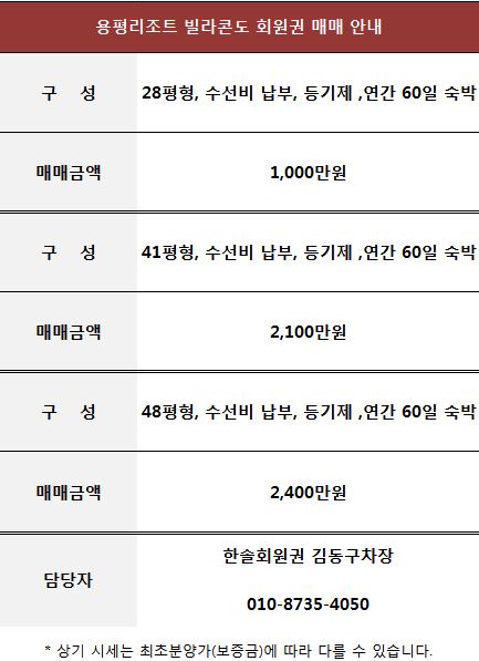 용평리조트 빌라콘도 회원권 매매 정보