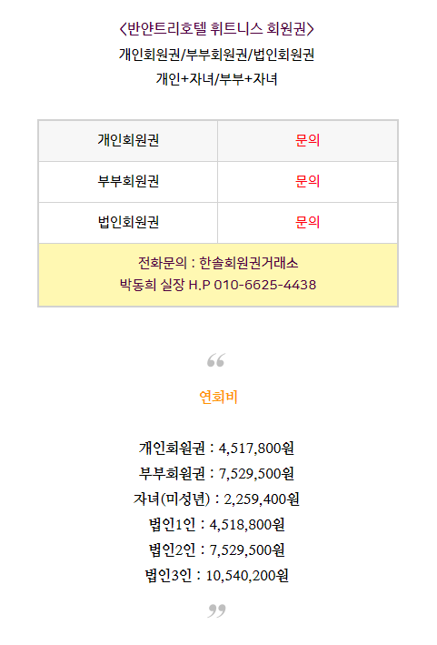 반얀트리호텔휘트니스회원권 안내드립니다.