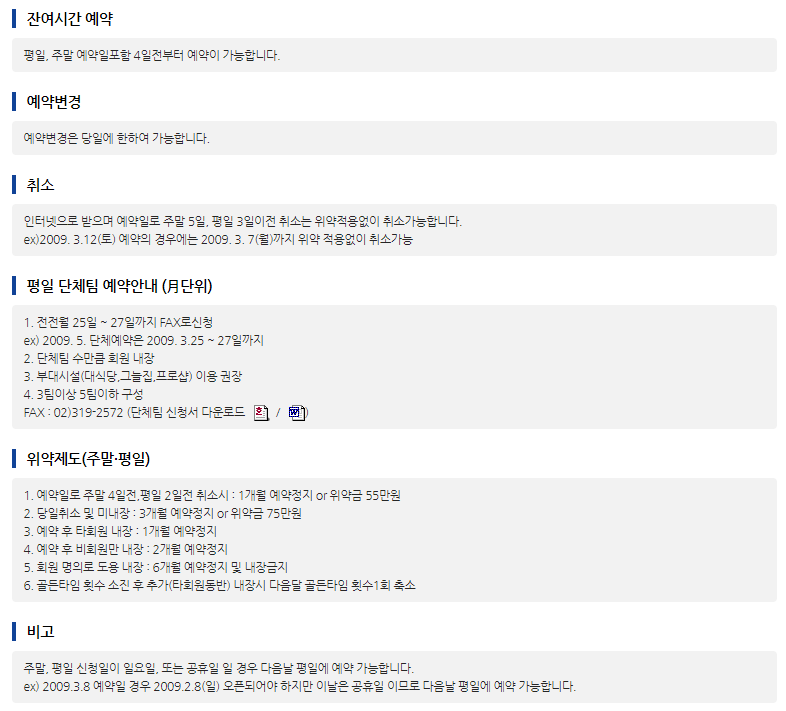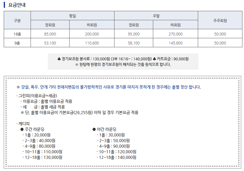 ● 코리아cc 이용요금 및 예약 안내 ●