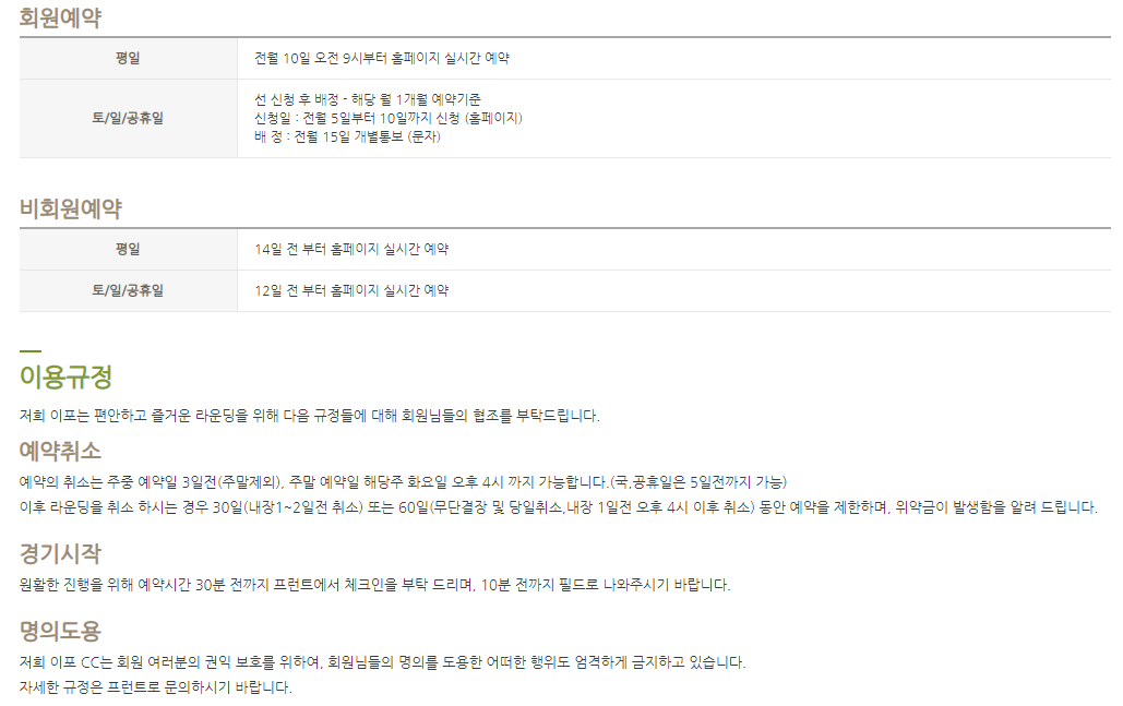 이포cc 회원권은 주중회원권과 일반회원권으로