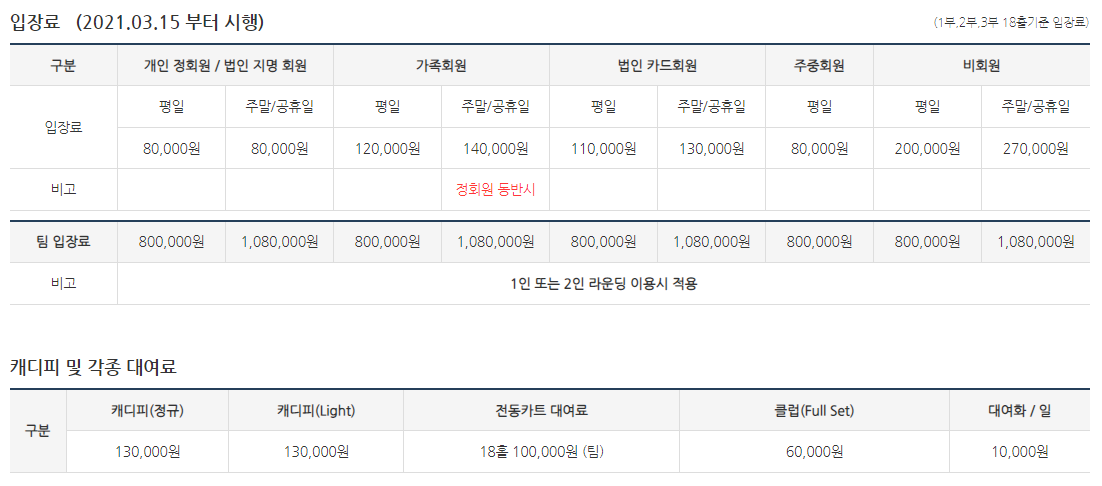 ● 중부cc 이용요금 및 예약안내 ●