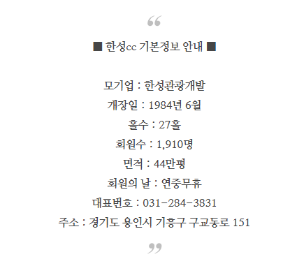 이루고 있는 한성cc에 대해서 알아보도록 하겠습니다.