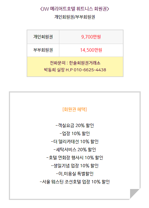 jw 메리어트호텔휘트니스회원권 정보안내
