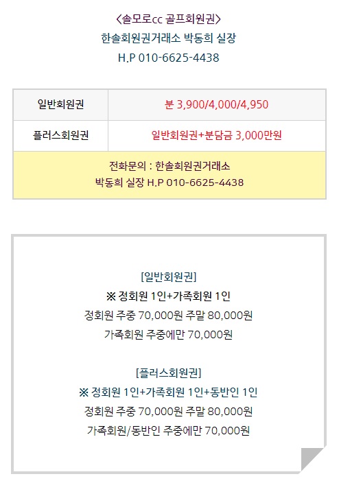 솔모로cc 회원권은 일반회원권과 플러스회원권으로