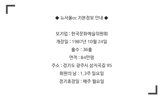 ◆ 뉴서울cc 이용요금 및 예약 안내 ◆
