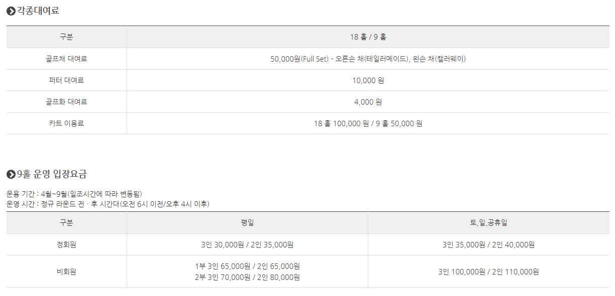 구성되어 있습니다. 회원권의 종류에 따라서 시세와 혜택 등에