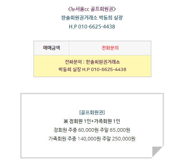뉴서울cc 회원권은 정회원 1인과 가족회원 1인으로