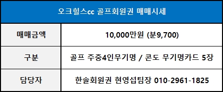 ◀ 오크힐스cc 주중무기명회원권 매매가격 ▶