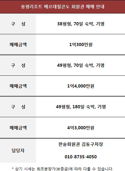 용평리조트 베르데힐콘도 회원권 매매 정보
