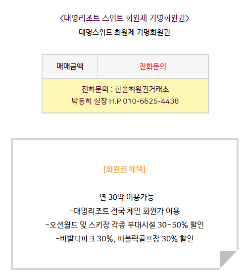 매매상담 - 한솔회원권거래소 박동희 실장 010.6625.4438