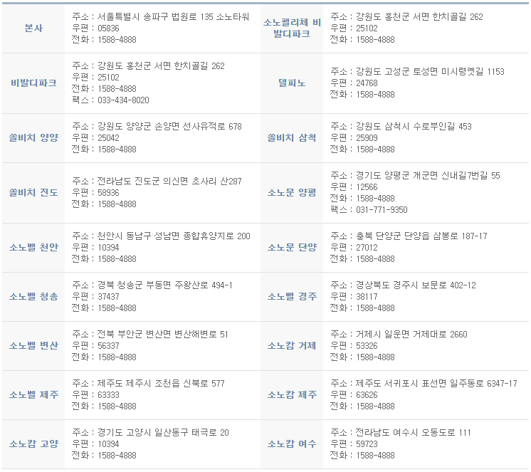 소노호텔&리조트 전국 체인 회원가 이용, 오션월드 및 스키장, 각종