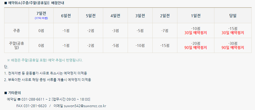 ◆ 수원cc 이용요금 및 예약 안내 ◆