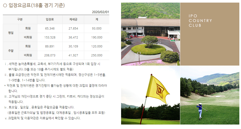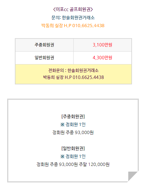 이포cc 회원권은 주중회원권과 일반회원권으로