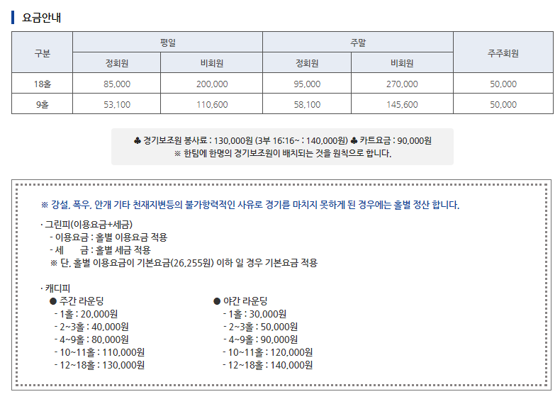 ◆ 코리아cc 이용요금 및 예약 안내 ◆