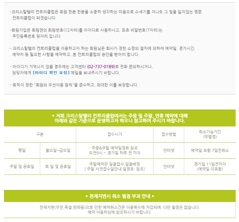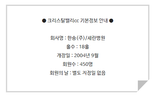 ● 크리스탈밸리cc 이용요금 및 예약안내 ●