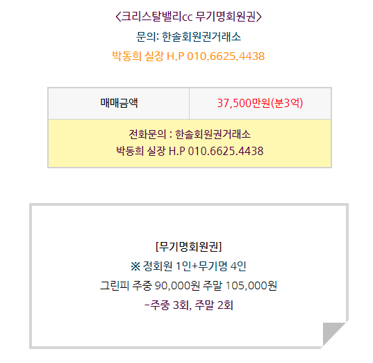 크리스탈밸리cc 무기명회원권은 정회원 1인과