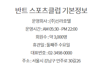 오늘은 서울 도곡동에 위치한 반트 스포츠클럽에 대해서