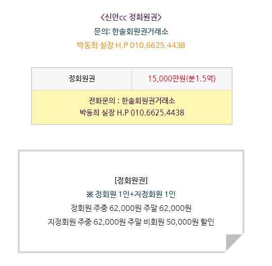 신안cc 회원권은 정회원권으로 정회원 1인과