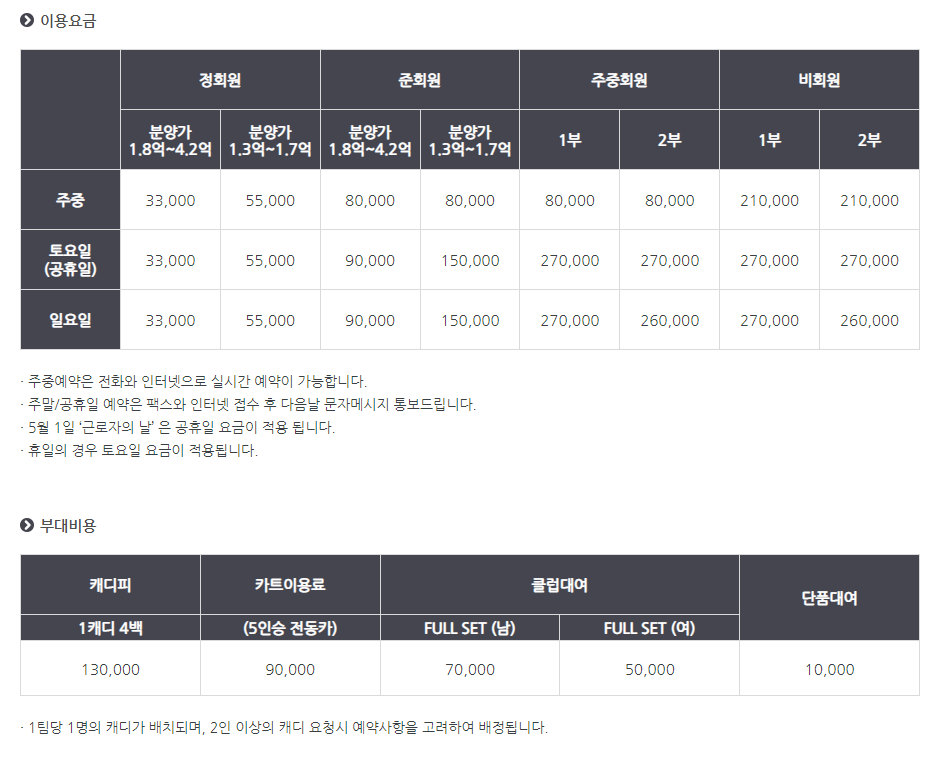 ◆ 서원밸리cc 이용요금 및 예약 안내 ◆