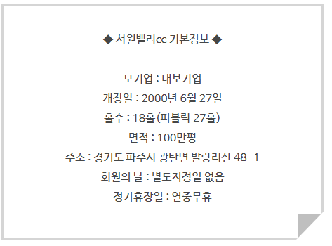 서원밸리cc에 대해서 알아보도록 하겠습니다.