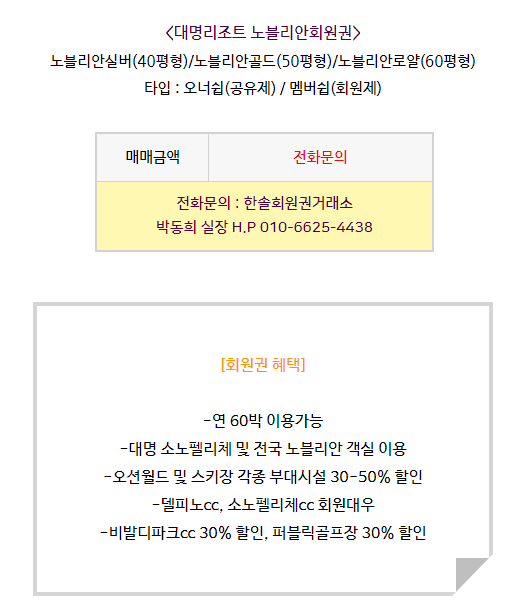 대명리조트노블리안회원권 혜택안내
