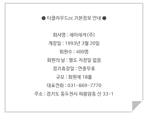 오늘은 북서울의 명문 골프장인 티클라우드cc에 대해서