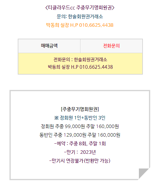 티클라우드cc 회원권은 주중무기명회원권으로 정회원 1인과