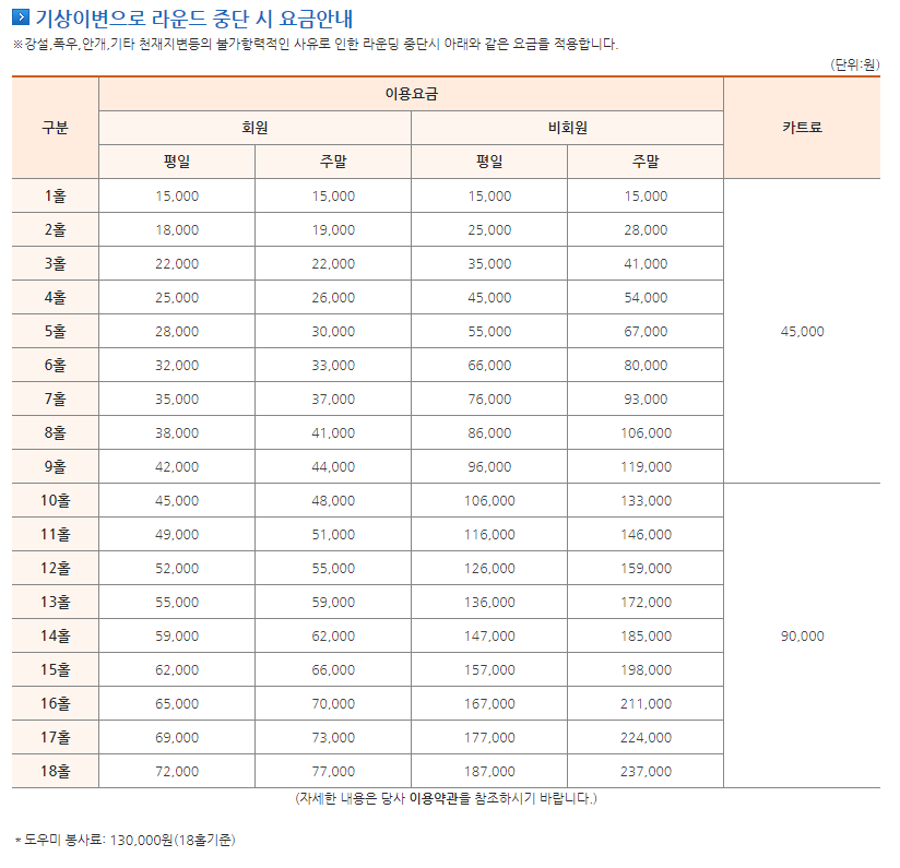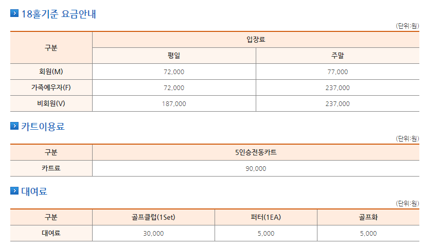 ◆ 기흥cc 이용요금 및 예약 안내 ◆