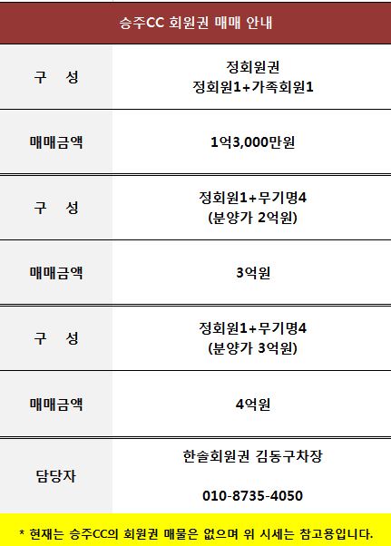 승주CC 골프 회원권 매매 정보