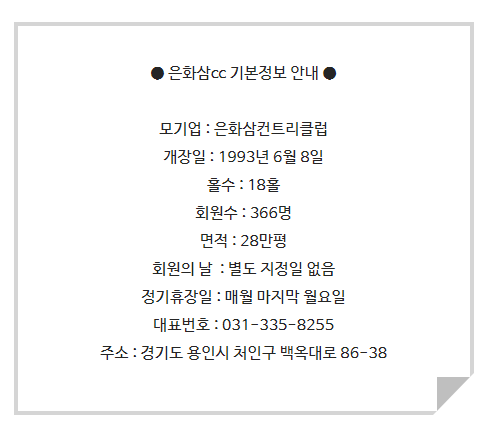 오늘은 1993년에 개장한 은화삼cc에 대해서