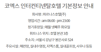 장점을 보유하고 있는데요. 코엑스인터 주요시설 이용과 호텔 내 레스토랑