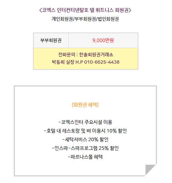 코엑스 인터컨티넨탈호텔의 휘트니스 회원권에 대해서