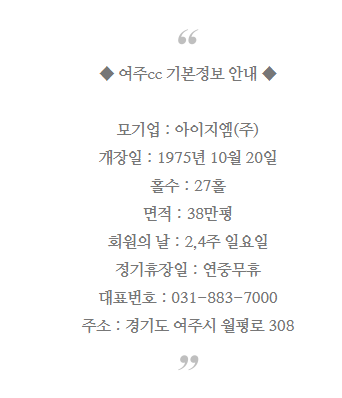 ◆ 여주cc 이용요금 및 예약 안내 ◆