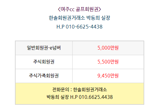 여주cc 회원권은 일반회원권과 주주회원권,