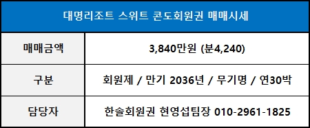 ◀ 대명콘도 스위트 매매가격 ▶