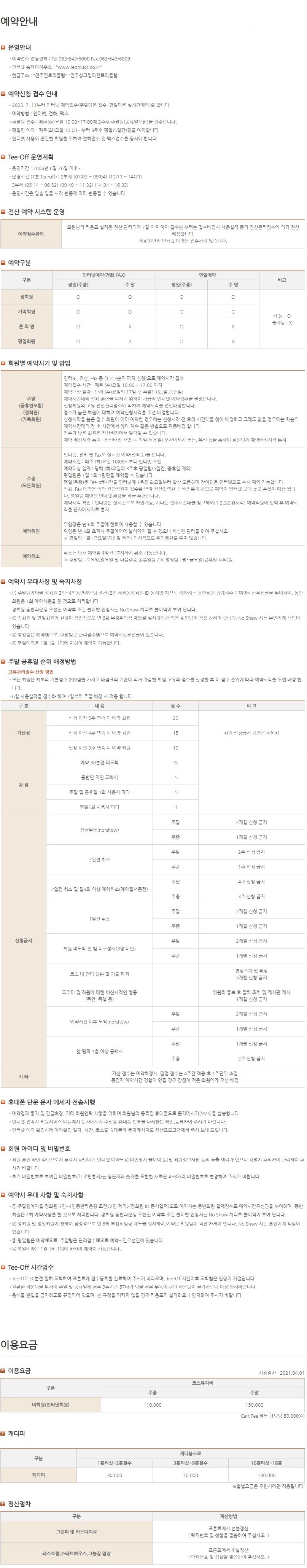 정회원, 무기명 그린피 주중, 주말 6만원