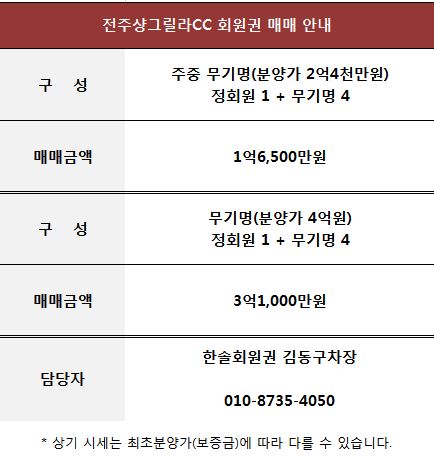 전주샹그릴라CC 골프 회원권 매매 정보