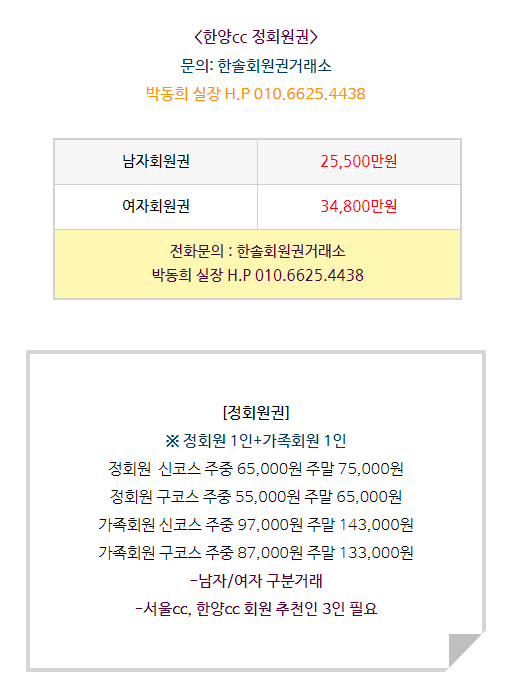 구분되어 거래되며 서울cc, 한양cc 추천인 3인이 필요하다는