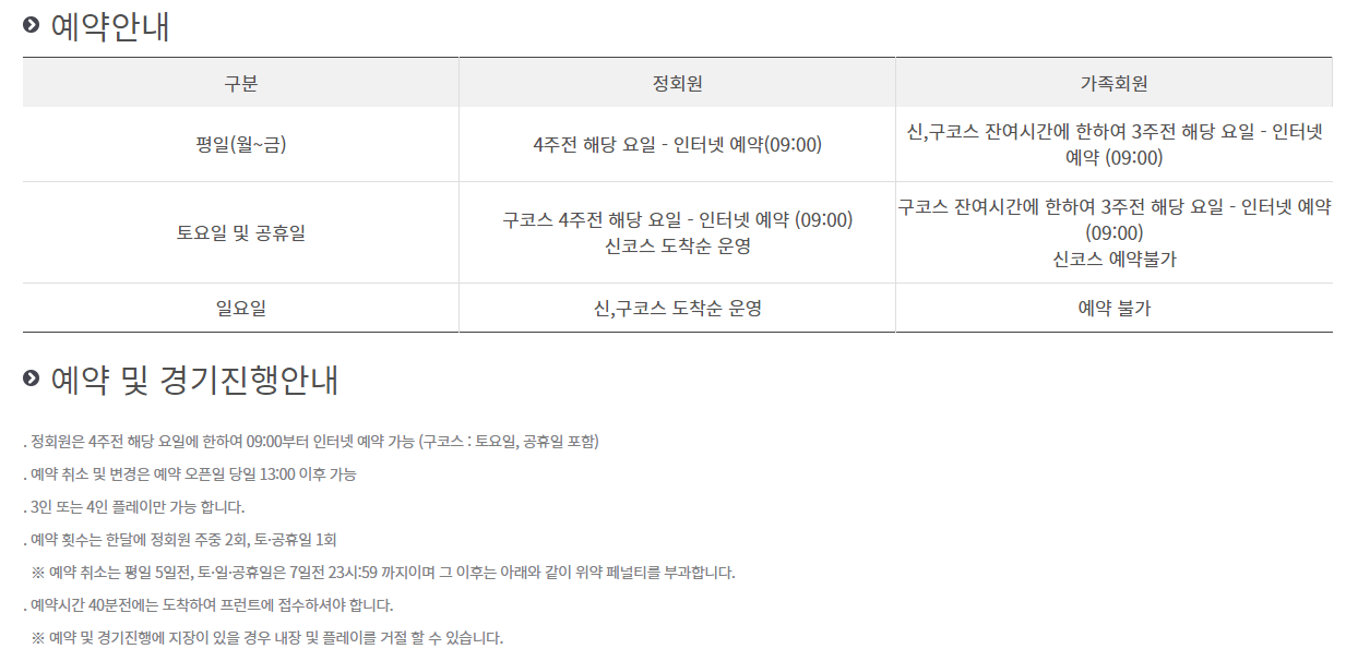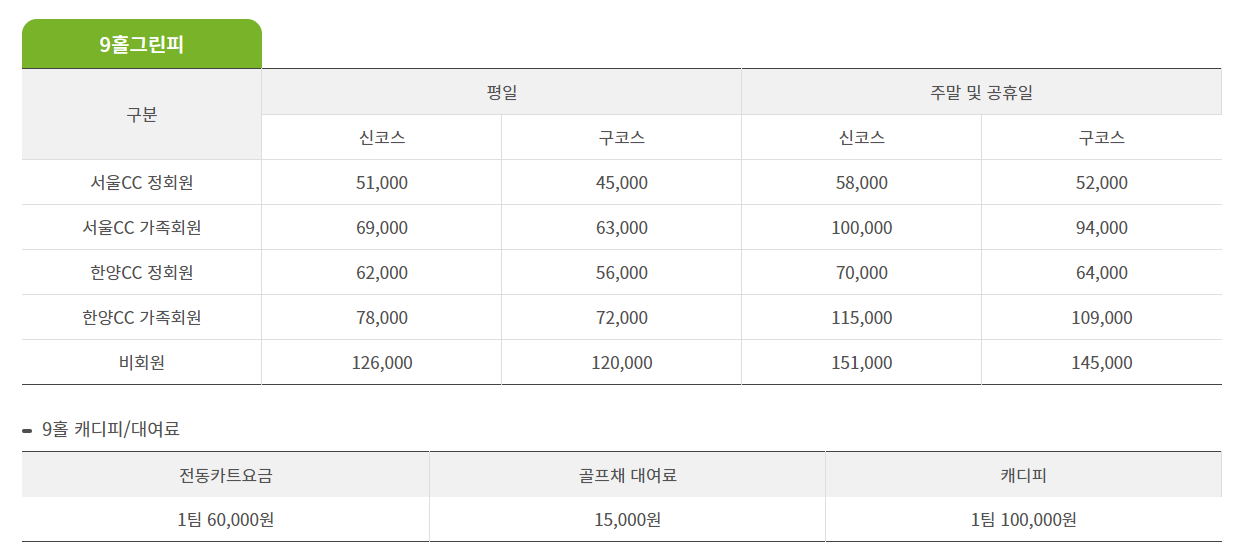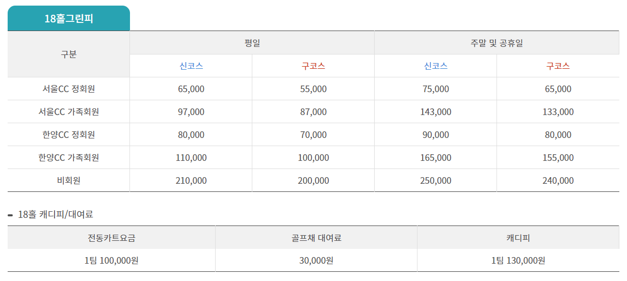● 한양cc 이용요금 및 예약 안내 ●