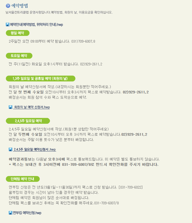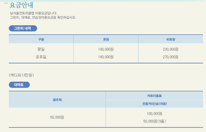 ◆ 남서울cc 이용요금 및 예약 안내 ◆