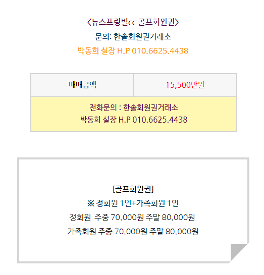 뉴스프링빌cc 회원권은 정회원 1인과 가족회원 1인