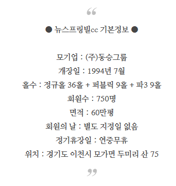● 뉴스프링빌cc 이용요금 및 예약 안내 ●