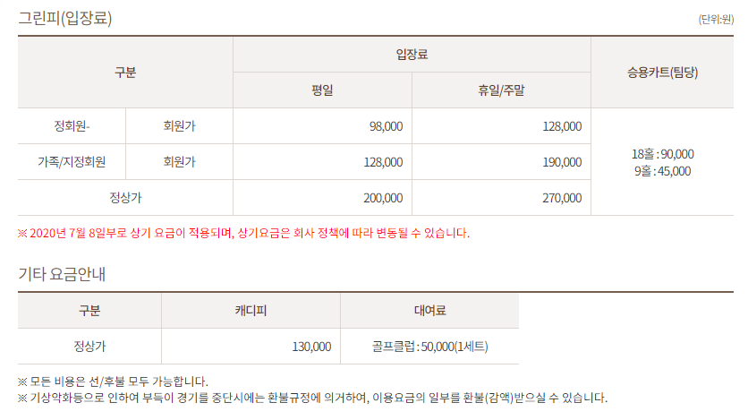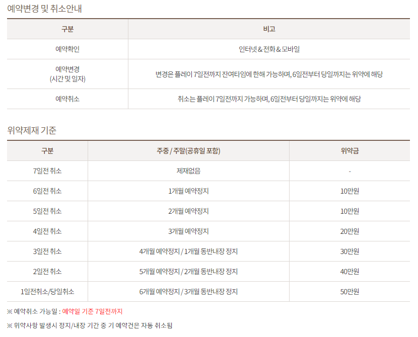 ● 에이치원cc 이용요금 및 예약 안내 ●